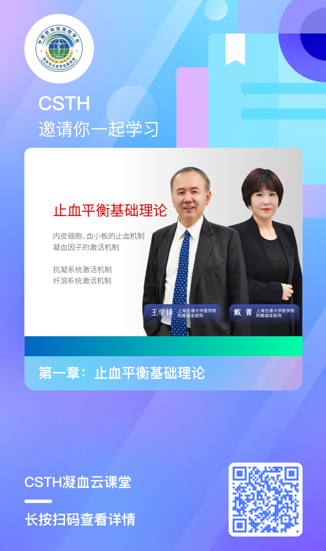 凝血云課堂是中國研究型醫(yī)院學會血栓與止血專業(yè)委員會打造的學習平臺。CSTH凝血云課堂集結了國內眾多優(yōu)秀的凝血專家學者,系統(tǒng)地針對血栓與止血實驗室相關檢測基礎理論、指標、指南共識、儀器操作、案例等等各方面為大家傳道解惑,利用網(wǎng)課開設一系列專業(yè)系統(tǒng)的凝血繼續(xù)教育課程,對大家完全免費,幫助大家系統(tǒng)的了解和學習這門學科。