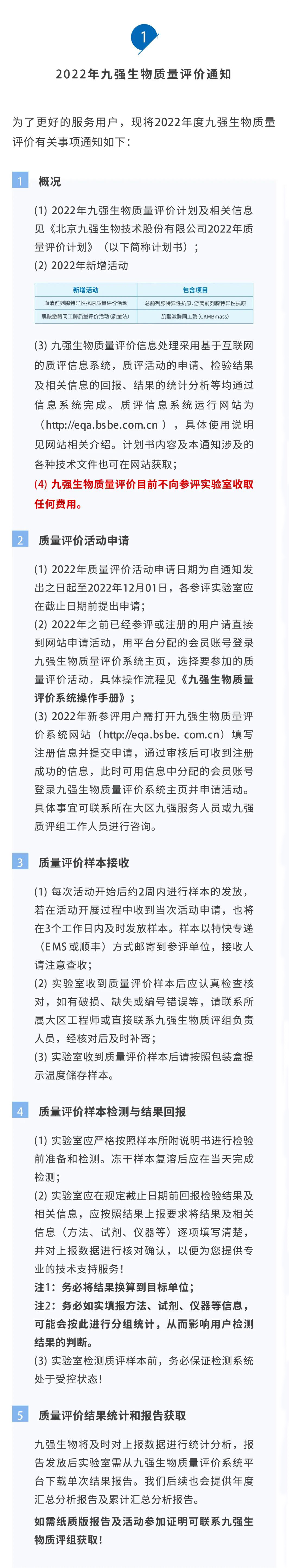 北京九強生物技術股份有限公司2022年質(zhì)量評價計劃