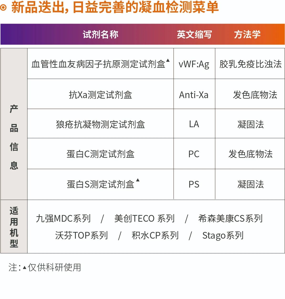 抗Xa活性試驗(yàn)可用于UFH、LMWH、磺達(dá)肝癸鈉、直接FXa抑制劑等多種藥物抗凝強(qiáng)度/血藥濃度的測定。