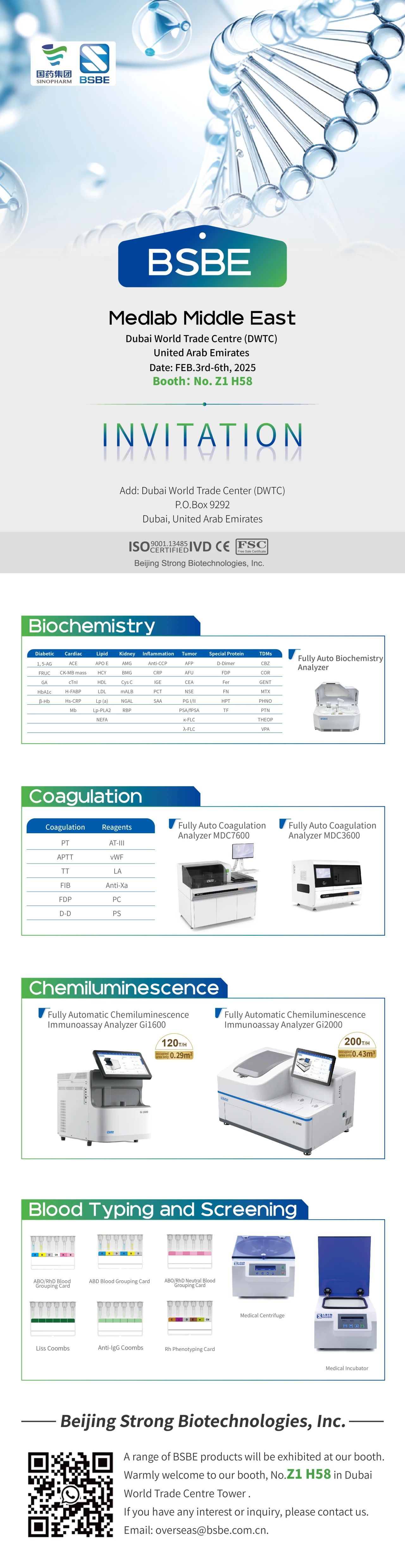九強生物攜旗下?生化檢測系統(tǒng)、血凝檢測系統(tǒng)、化學發(fā)光檢測系統(tǒng)、血型檢測系統(tǒng)、病理檢測系統(tǒng)?等產品參會,期待能與全球各地的同仁進行交流探討。
