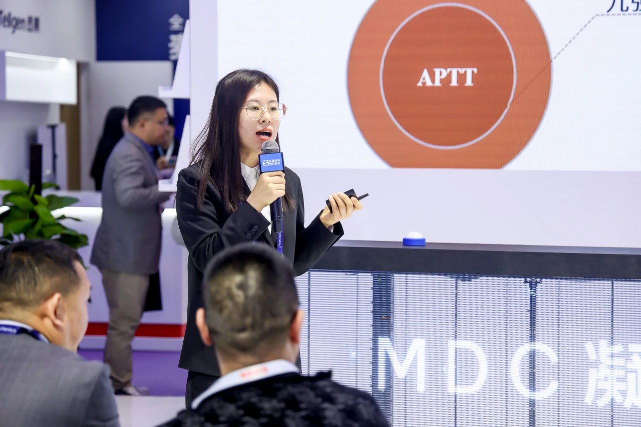 九強生物產(chǎn)品經(jīng)理劉云婷女士對MDC凝血家族進行了非常詳細的介紹與講解。高精度的凝血分析儀及流水線搭配靈敏的試劑,能夠快速、精準(zhǔn)地剖析樣本,大大提升檢測效率。