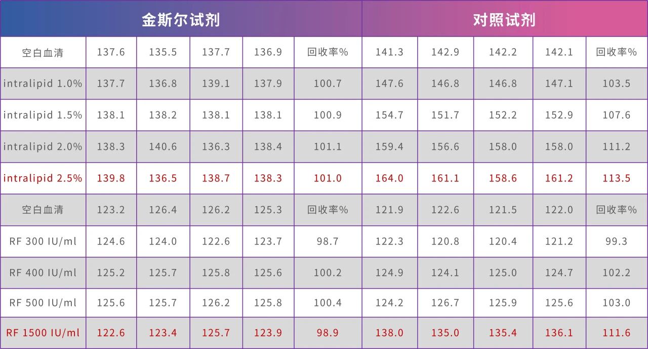 抗干擾能力更強(qiáng)(intralipid 2.5%,RF1500IU/mL)。