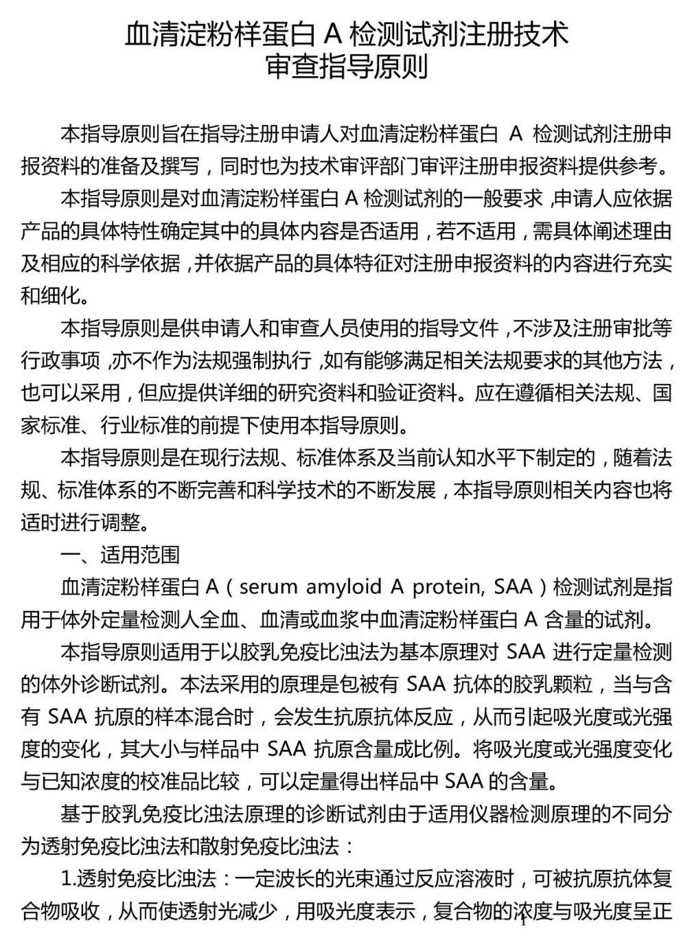 血清淀粉樣蛋白A檢測(cè)試劑注冊(cè)技術(shù)審查指導(dǎo)原則